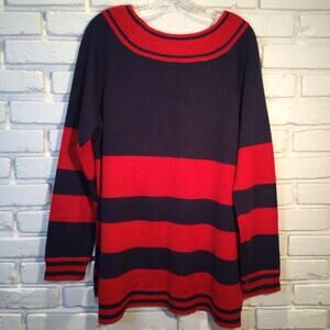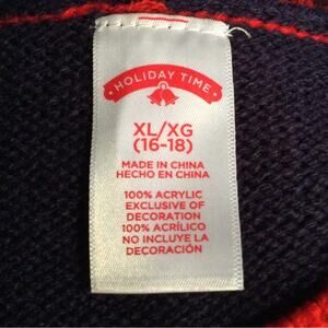Condition is excellent pre-owned. Fun to wear holiday party scoop neckline sweater with split hem. On a Holiday Time tag. Tagged size XL 16/18. 15oz. B2
