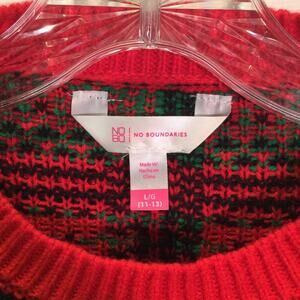 Condition is good pre-owned. Fun soft black and red holiday sweater with sequins. On a No Boundaries tag. Juniors size Large 11/13. 13 oz HCS2