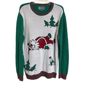 Ugly Christmas Sweater Santa Laying In Snow Size Large