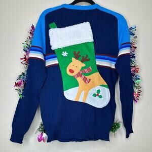 One of a kind Ugly Christmas Sweater! Each sweater is hand crafted by yours truly. I find the sweater which is the base and add each ornament, tinsel, Christmas lights, etc. and you get to enjoy without all that hassle!