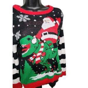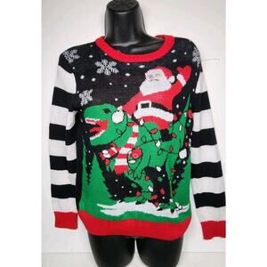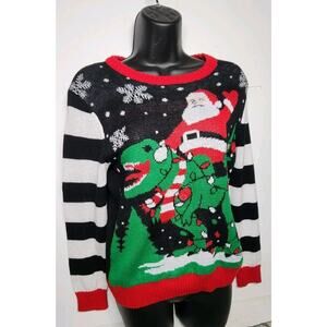 Ugly Christmas Sweater Sz Med Santa Claus Riding T Rex Dinosaur 30" Chest