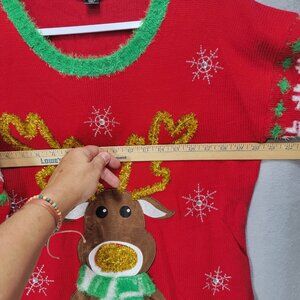 Ugly Christmas Sweater Unisex L Reindeer 3D Rhinestone Tinsel Fur Knit Holiday