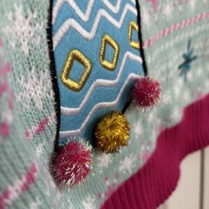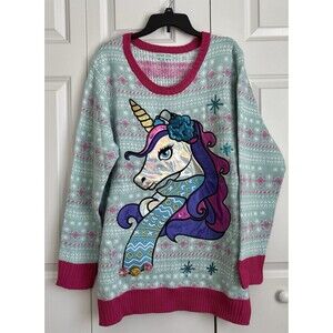 Ugly Christmas Sweater Women Knit Blue Unicorn Pullover Crew Neck Holiday Festive Oversize