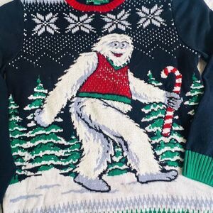 Ugly Christmas Sweater Womens Multicolor Abominable Snowman Pullover Size Large