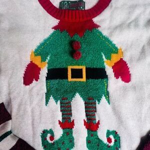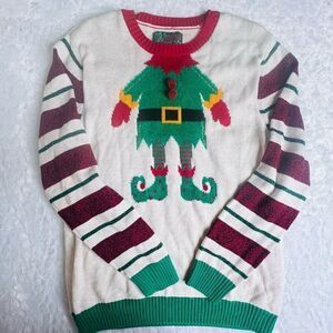 Ugly Christmas Sweater Womens Multicolor Holiday Elf Knit Pullover Sweater Large