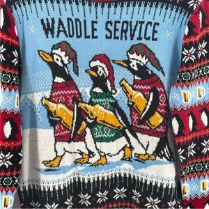 Ugly Christmas Sweater Womens Multicolor Waddle Service LS Sweater Size XXL