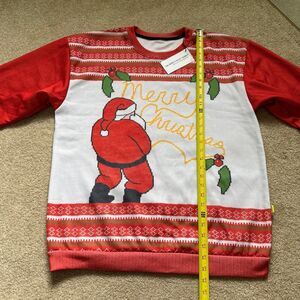 Men's Ugly Christmas Sweater Santa Peeing Merry Christmas Holiday Red