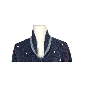 Ugly Christmas Sweater Zip Cardigan Size Medium Blue Reindeer Snow Fun Novelty