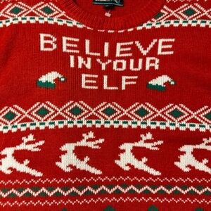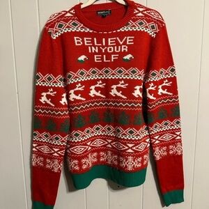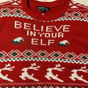 Ugly Christmas Sweater by Smart Living Believe in Your Elf Knit Fairisle Red Med