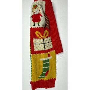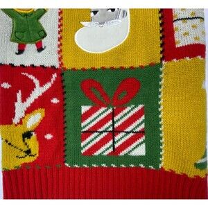 Color: Multi-color patchwork knit with festive Christmas theme