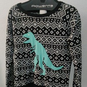 Make a RoAr at your next ugly Christmas Sweater party with this cute little T Rex sweater by Xhilaration! Black and white pattern with teal contrasting dino is fun for any fall/winter occasion!