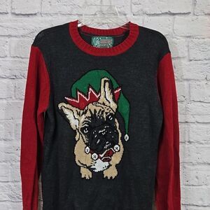 Ugly Christmas Sweater French Bull Dog Elf Pullover Motion LED Light Knit Unisex