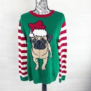 Ugly Christmas Sweater Santa Pug sweater size large. No holes, light color run on one arm as pictured. Not easily seen.