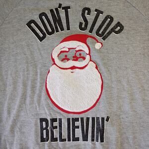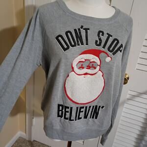 Ugly Christmas Sweatshirt XL-DON'T STOP BELIEVIN'- Grey Cotton/Poly Blend
