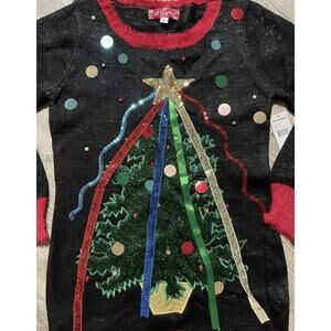 Ugly Christmas Tunic Sweater Christmas Tree Ribbon Small 33 Degrees Party