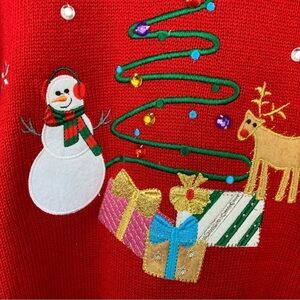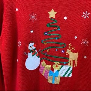 Ugly Holiday Party Sweater Womens Size Large Red Snowman Knit Christmas Fun