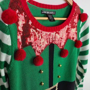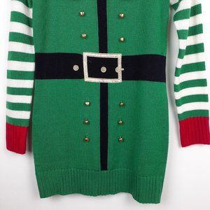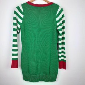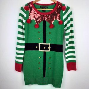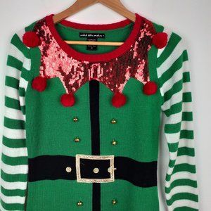 Ugly Sweater Dress Christmas Elf Size XS. Red Green White Sequins jingle bells