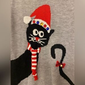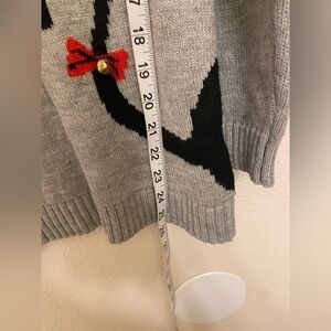 Ugly cute Christmas Holiday Sweater kitty cat black bell grey crewneck S/M