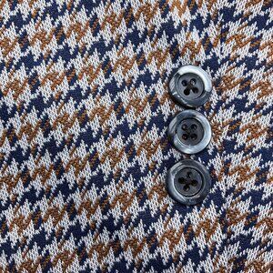 Experience timeless elegance with the Ugo Pucci Blazer, crafted in the USA. This vintage 70s piece features a unique gray, blue, and brown houndstooth pattern and a stylish belt, perfect for the modern man.