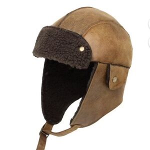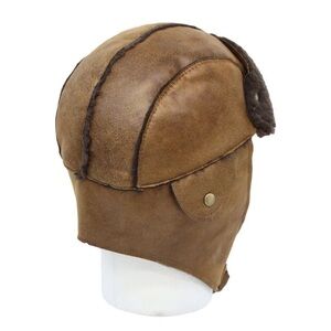 Uilily Bike Motorcycle Trapper Earflap Cap Faux Leather Russian Winter Hat