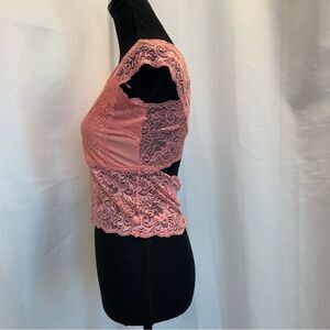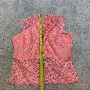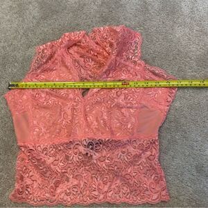 Uk2la peach pink lace stretchy V-neck sleeveless top crisscross L clubwear NWOT