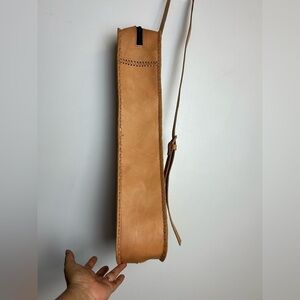 Ukelele Genuin Brown Leather Case Crossbody Strap Minimalist Neutral adjustable