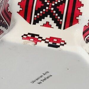 Ukrainian Arts by Stefania Red White Folk Art Patterned Vase Maximalist Eclectic