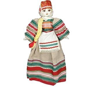 Ukrainian Russian Porcelain Doll Brown Red Green 18.5"