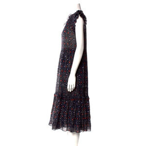 Ulla Johnson 2 Linea Ruffle Midi Dress Cotton Puff Shoulder Maxi Navy Blue EUC!