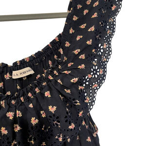 Ulla Johnson 2 Off Shoulder Rose $595 Maxi Dress 100% Cotton Eyelet Black Pink