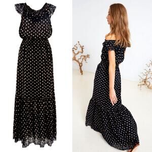Ulla Johnson 2 Off Shoulder Rose $595 Maxi Dress 100% Cotton Eyelet Black Pink