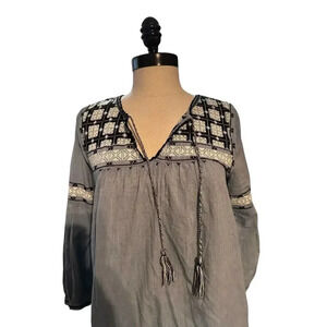 Ulla Johnson 3/4 Sleeve Tassel Ties Embroidery Tunic Dress Size 2