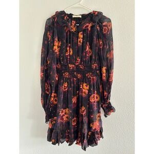Ulla Johnson Adara Dress Womens 2 Black Orange Mini Floral Silk Smocked Party