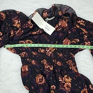 This classic Ulla Johnson silhouette is made from 100% silk chiffon that is printed with a sophisticated French botanical pattern. Adara features billowing sleeves and ruffle detailing along the neckline!