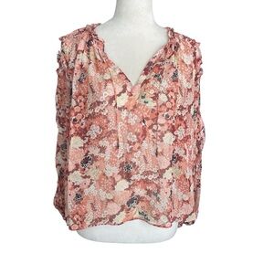 Ulla Johnson Adela Floral Silk Semi Sheer Balloon Sleeve Tasseled Top Women 10