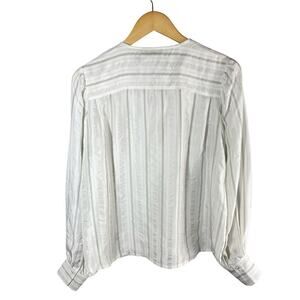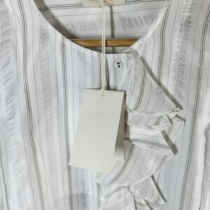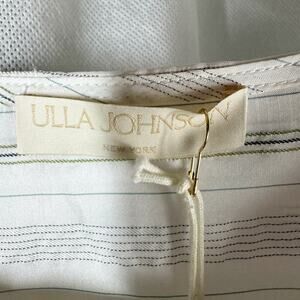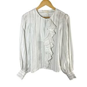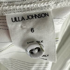 Ulla Johnson Adelaide Long Sleeve Ruffle Silk Blouse Size US 6 Chalk. New with tag but has a small flaw, thread snag located at the back as pictured, hardly noticeable. Measurements are approximates only. Lightweight, unlined, stripe pattern, button closure, slightly oversized.