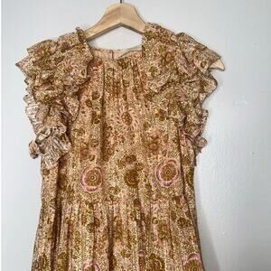 Ulla Johnson Adele Mini Dress Ruffle Sleeves in Meadow Orange/Yellow Size 0/XS