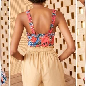 vibrant tank fixed with a corset-inspired bodice and matching buttons along the front. Ruffle straps and boning to hold shape. So cut and perfect for your next trip to a sunny locale!