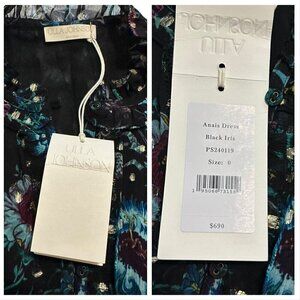 Ulla Johnson Anais Dress in Black Iris, Size 0, Silk New with tags