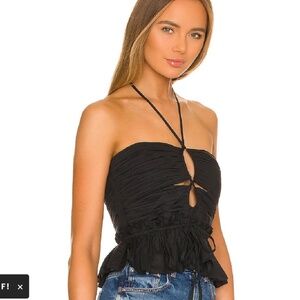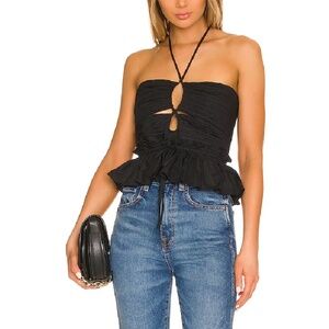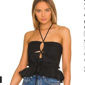 100% cotton. Made in China. Machine wash. Halterneck with back tie closure. Smocked hem. Front cut-out design with peplum hem. Crisp poplin fabric with plated detail. Revolve Style No. ULLA-WS298. Manufacturer Style No. SP220271.