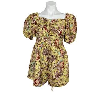 Ulla Johnson Arlo Floral Print Cotton Poplin Playsuit Romper Calla Lily Size 8