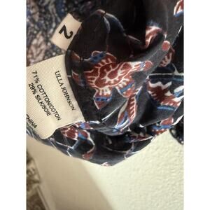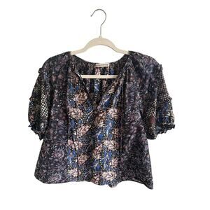 Ulla Johnson Indonesian inspired Batik patchwork top features short sleeves with elastic banding and self-tie neck with beaded detailing.