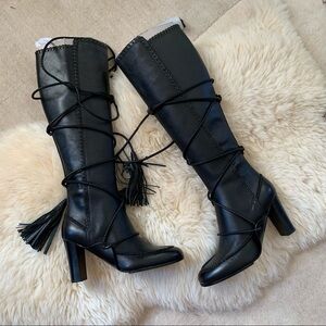 Ulla Johnson Atlas Moccasin Raven Black Bohemian Wrap Braided Knee Boots 5