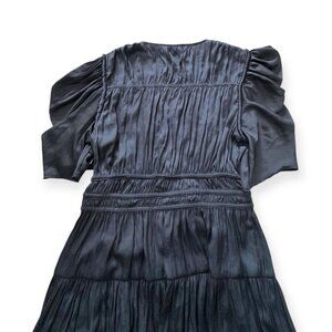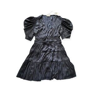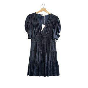 Ulla Johnson Azaria Dress Midnight Plissé Satin Mini Size 12 NWT $575