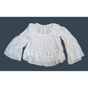Ulla Johnson Beaded Tie Neck Semi Sheer Ivory Ruffle Blouse Silk Cotton Top 2