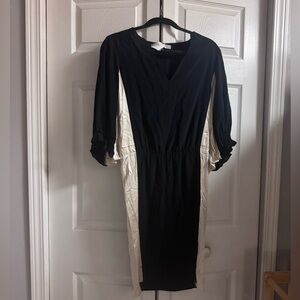 Ulla Johnson Beige & Black Beaded Sleeve Detail Dress size 4 Silk