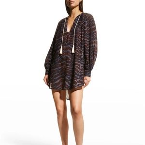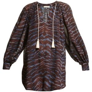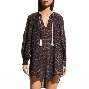 Ulla Johnson "Biarritz" lightweight tunic with a bold pattern and tassel self-ties