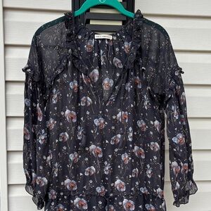Ulla Johnson Black Floral Long Sleeve Sheer Silk Dress-2