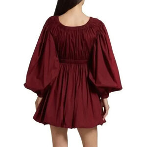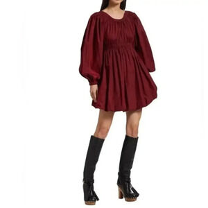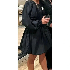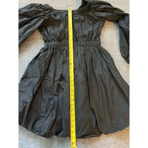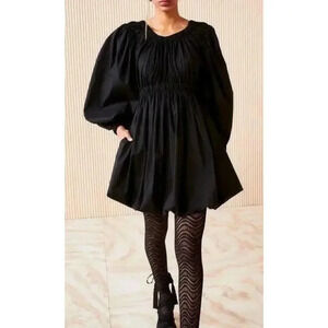 Ulla Johnson Black noir Martine Elastic Waist Pleated Balloon Sleeve Mini Dress Size 4 bubble hem