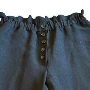 Black pants with paperbag waist and button detail on front